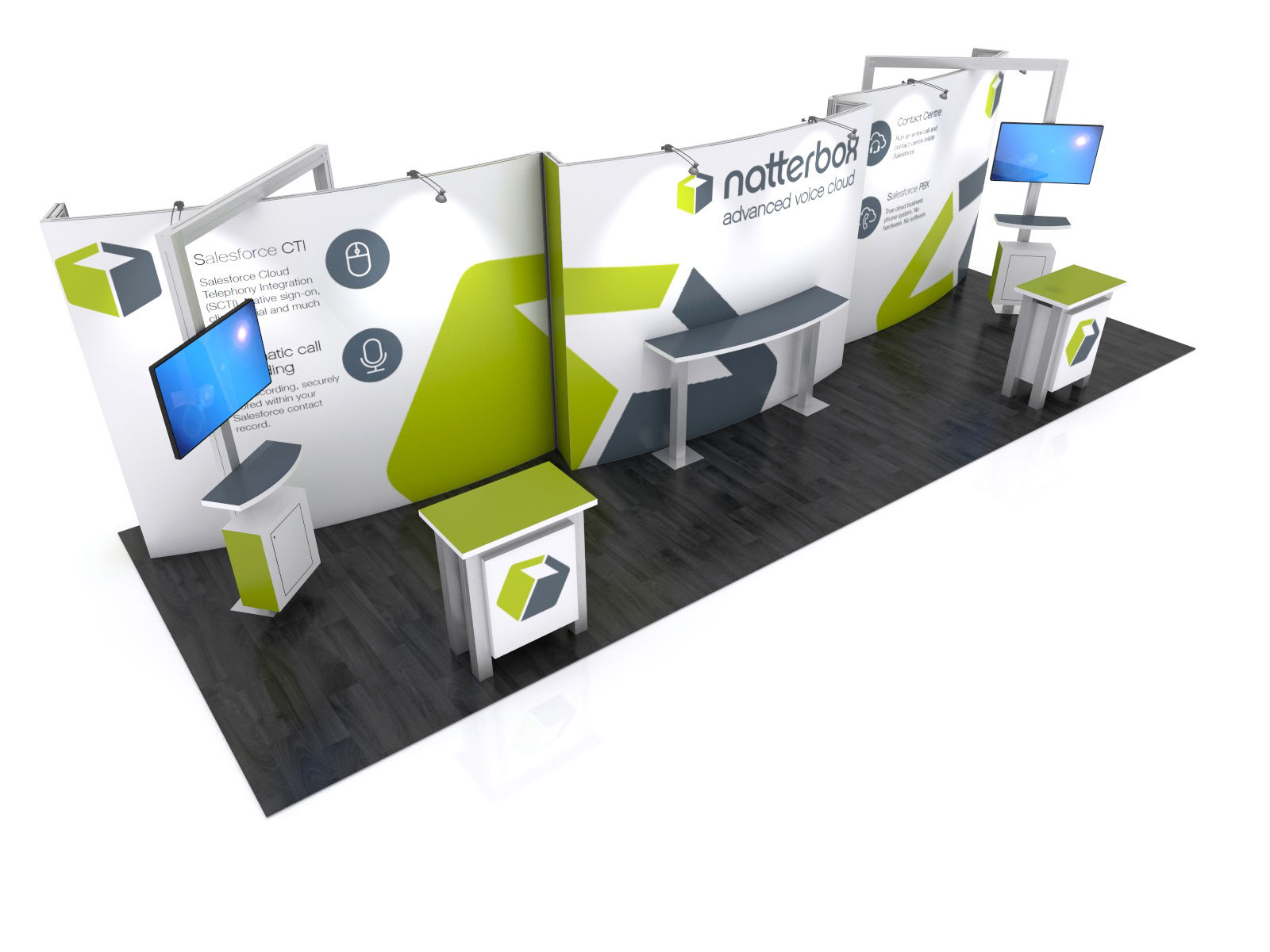Hybrid is a relatively new category of trade show displays. Generally, hybrid displays incorporate aluminum extrusion, tension fabric, and other display components such as laminates, wood, Sintra, and other materials to create a tabletop, inline, or island exhibit.