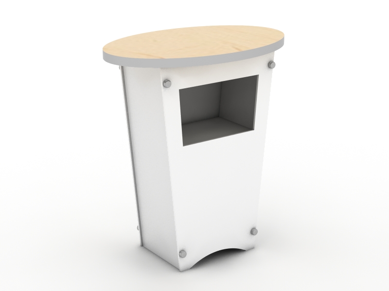 There are nearly 200 choices in the Counters and Pedestals gallery at a range of prices and features. Nearly all come with locking storage. Most counters and pedestals are modular, meaning they disassemble for shipping, but there are quite a few custom counters which ship fully assembled. Don't see exactly what you want? No problem. We specialize in designing and building counters and pedestals that meet any need.
