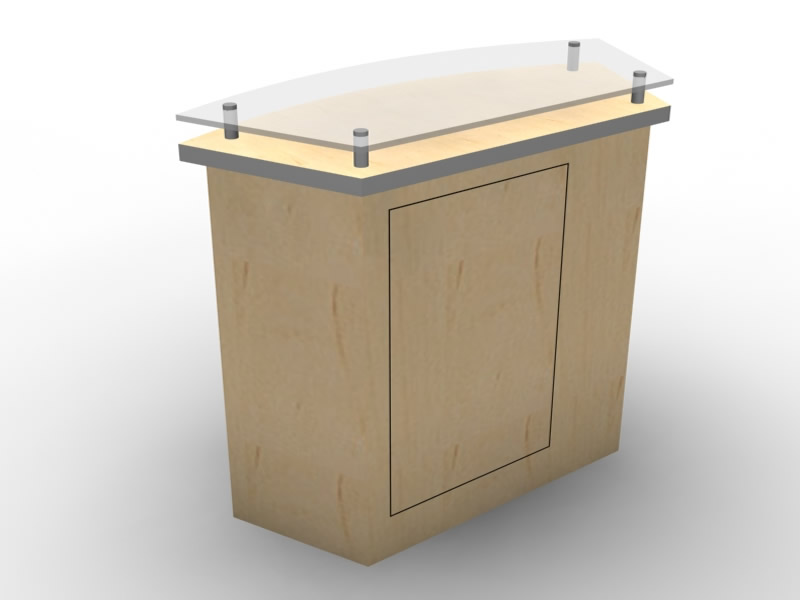 There are nearly 200 choices in the Counters and Pedestals gallery at a range of prices and features. Nearly all come with locking storage. Most counters and pedestals are modular, meaning they disassemble for shipping, but there are quite a few custom counters which ship fully assembled. Don't see exactly what you want? No problem. We specialize in designing and building counters and pedestals that meet any need.