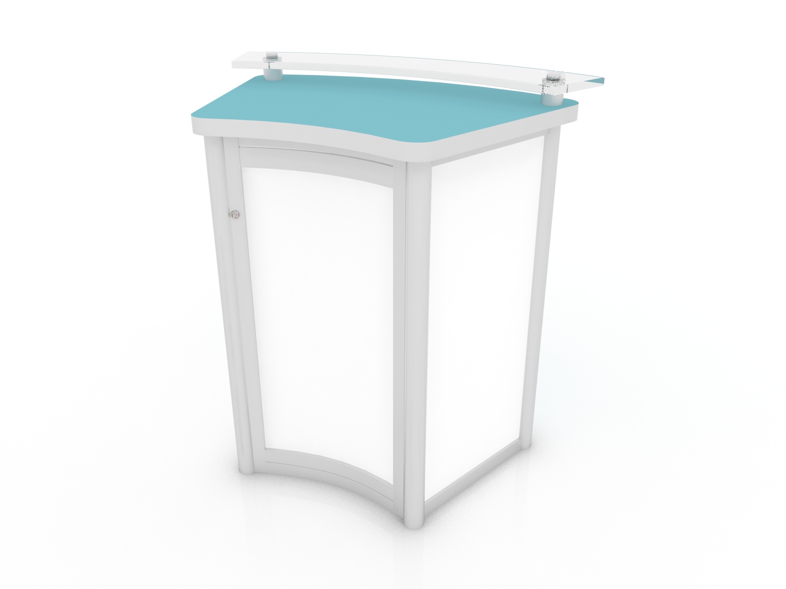 When choosing the right counter or pedestal for your display, consider how you will use it on the show floor. Do you need locking storage? Will the counter or pedestal hold a lead retrieval machine, laptop, or other electrical device? If so, you will need wire management. That may be as simple as ordering a grommet for the counter. If you are planning to use a tablet computer, consider the tablet insert option for the counter top. This option is practical, attractive, and secure for many tablets, such as an iPad.
