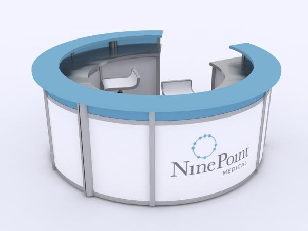 When choosing the right counter or pedestal for your display, consider how you will use it on the show floor. Do you need locking storage? Will the counter or pedestal hold a lead retrieval machine, laptop, or other electrical device? If so, you will need wire management. That may be as simple as ordering a grommet for the counter. If you are planning to use a tablet computer, consider the tablet insert option for the counter top. This option is practical, attractive, and secure for many tablets, such as an iPad.