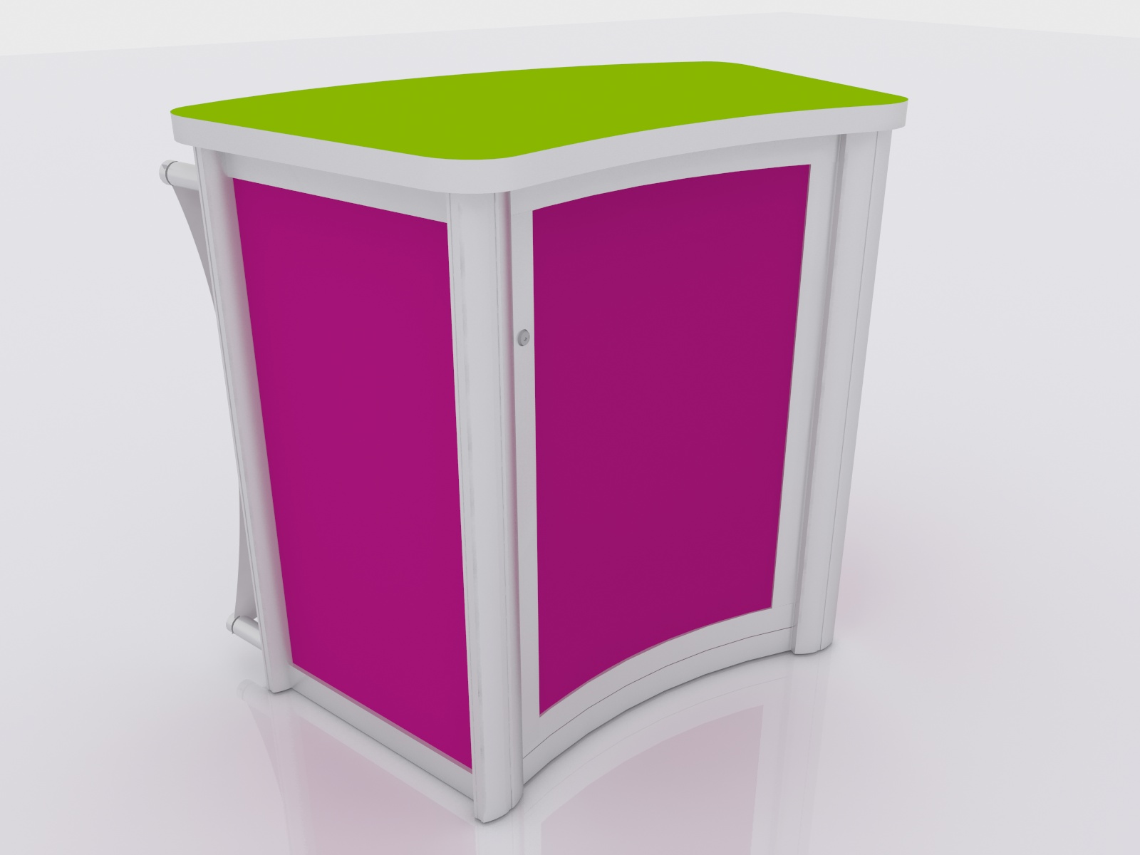 When choosing the right counter or pedestal for your display, consider how you will use it on the show floor. Do you need locking storage? Will the counter or pedestal hold a lead retrieval machine, laptop, or other electrical device? If so, you will need wire management. That may be as simple as ordering a grommet for the counter. If you are planning to use a tablet computer, consider the tablet insert option for the counter top. This option is practical, attractive, and secure for many tablets, such as an iPad.