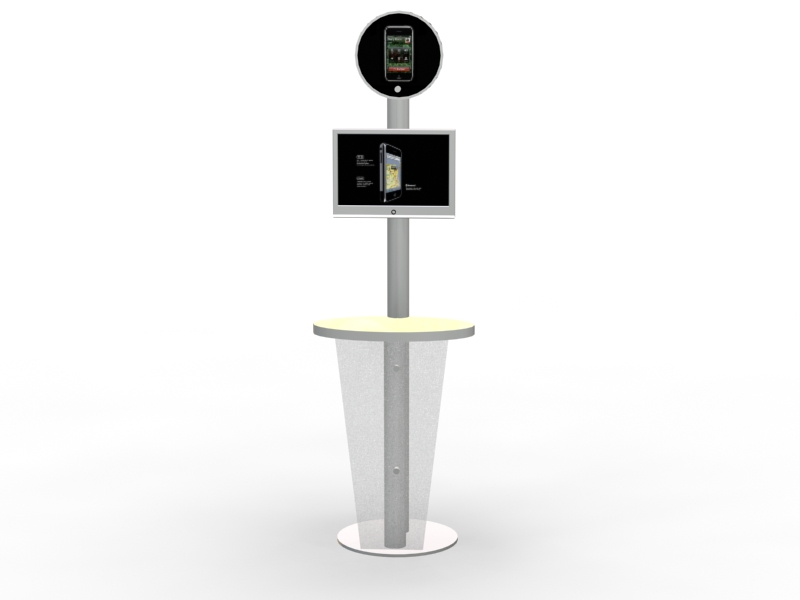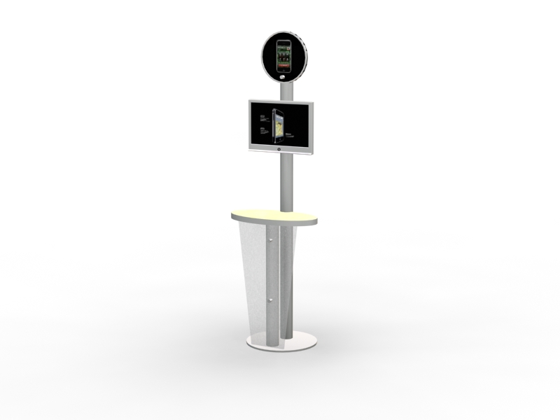 Workstations and Kiosks have become indispensable to most trade show displays. It's hard to imagine a booth without a monitor, laptop, or tablet computer anymore. You'll find nearly 100 choices in the Workstation and Kiosk gallery at a range of prices and features, many with locking storage. Most are modular, meaning they disassemble for shipping, but there are quite a few custom workstations which ship fully assembled. Don't see exactly what you want? No problem. We specialize in designing and building workstations and kiosks that meet any need.
