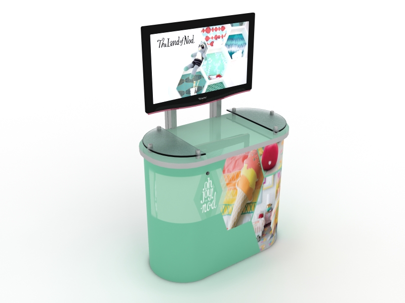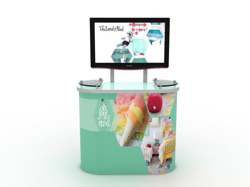 When choosing the right workstation or monitor stand for your display, consider how you will use it on the show floor. Do you need locking storage? Will the workstation or monitor stand hold a lead retrieval machine, monitor, or other electrical device? If so, you will need wire management. That may be as simple as ordering a grommet for the counter or arranging for cord covers. If you are planning to use a tablet computer, consider the tablet insert option for the counter top. This option is practical, attractive, and secure for many tablets, such as an iPad.