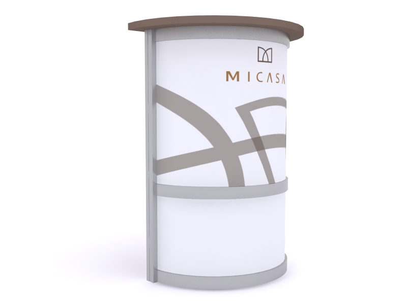 When choosing the right counter or pedestal for your display, consider how you will use it on the show floor. Do you need locking storage? Will the counter or pedestal hold a lead retrieval machine, laptop, or other electrical device? If so, you will need wire management. That may be as simple as ordering a grommet for the counter. If you are planning to use a tablet computer, consider the tablet insert option for the counter top. This option is practical, attractive, and secure for many tablets, such as an iPad.