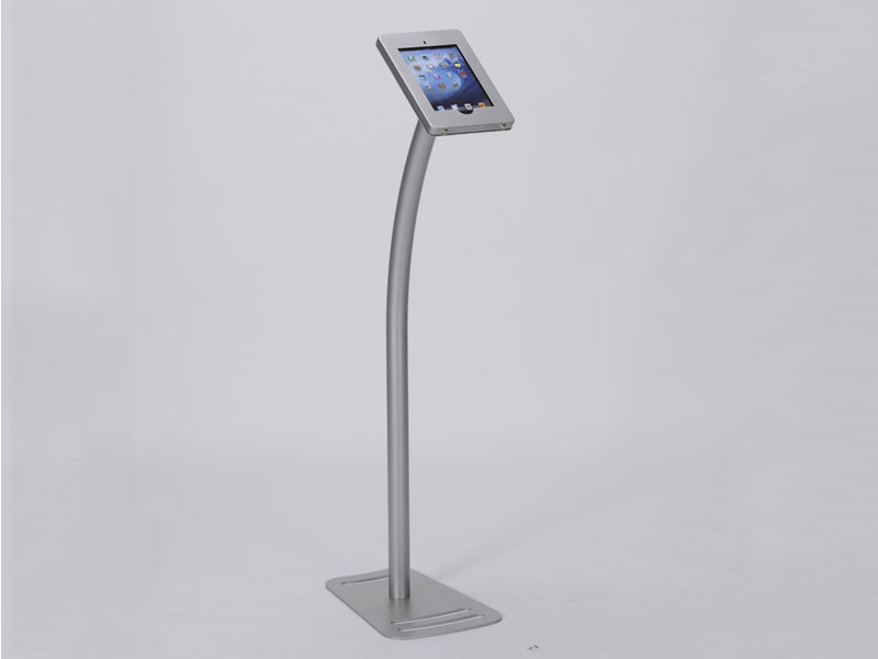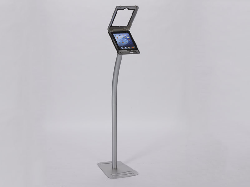 MOD-1333 Portable iPad Kiosk -- SilverThe Port Land iPad Kiosks™ are anything but dull. They are innovative, lightweight, and affordable. The locking clamshell frame rotates with the unique Swivel Stop™ feature, allowing you to seamlessly reposition your iPad to Portrait or Landscape mode. The kiosks are made from durable engineered aluminum and assembly in minutes. There are multiple single iPad kiosks. The MOD-1334 is designed for two iPads and the MOD-1338 for four iPads. All have integrated cord management.