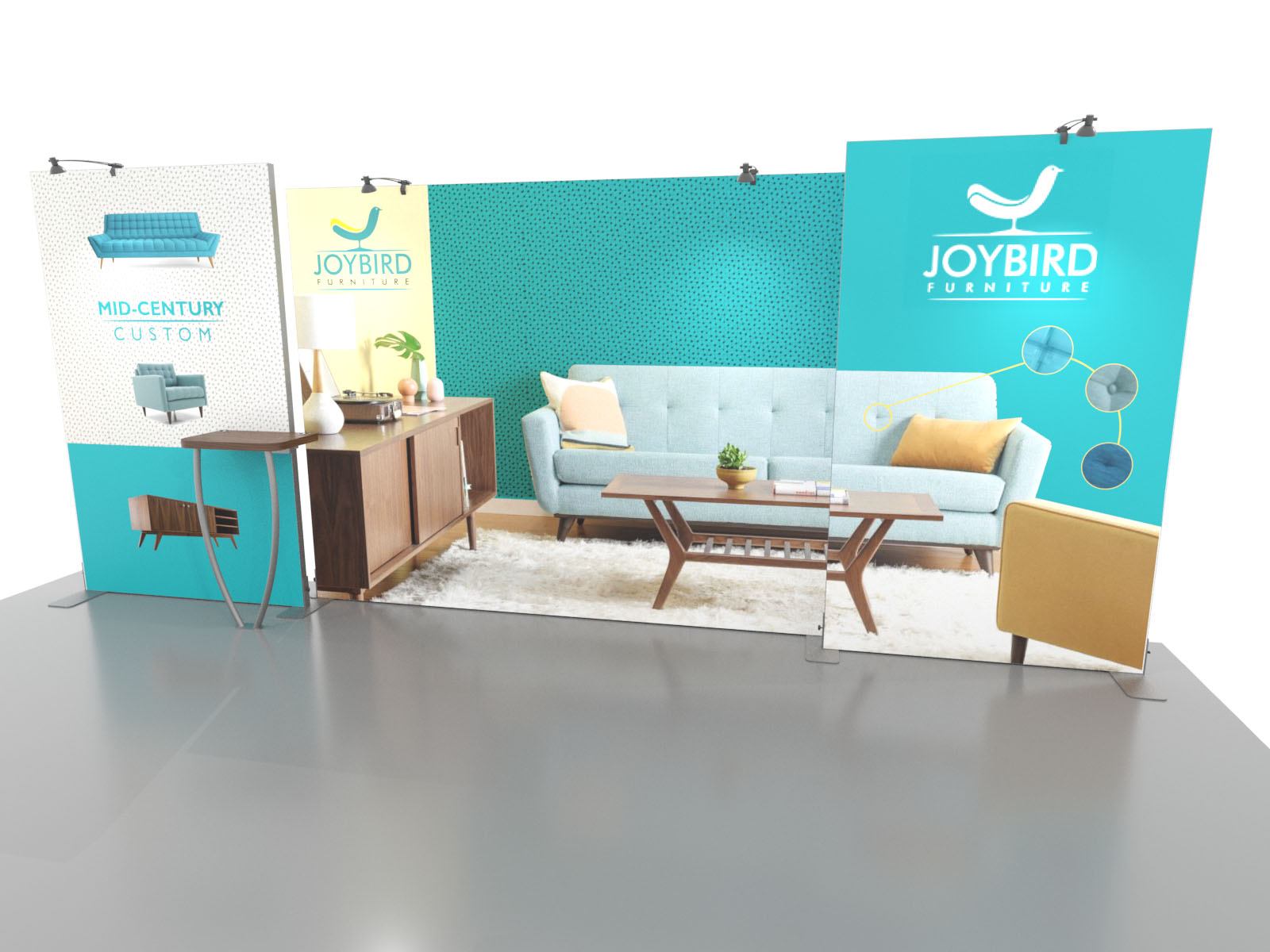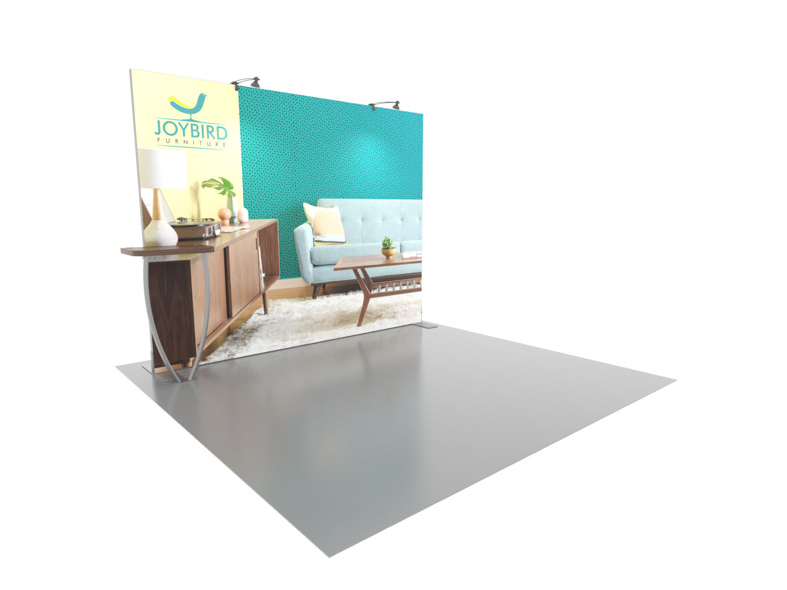 Personalize your Symphony Display with attractive counters, workstations, floating graphics, iPad clamshells, and monitor mounts. The lightweight aluminum frames are engineered for SEG dye-sublimated fabric graphics for a seamless, wrinkle-free look. Add floating graphics for additional visual layering and branding.