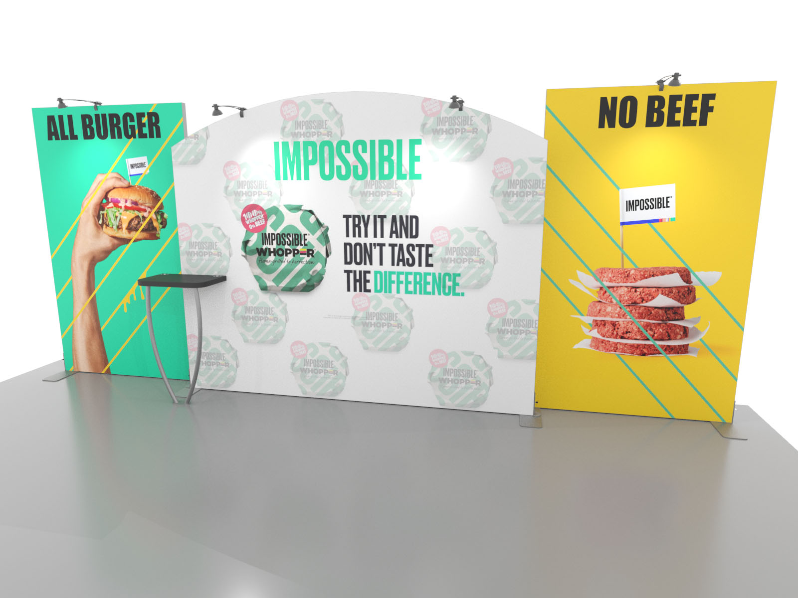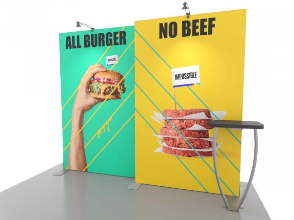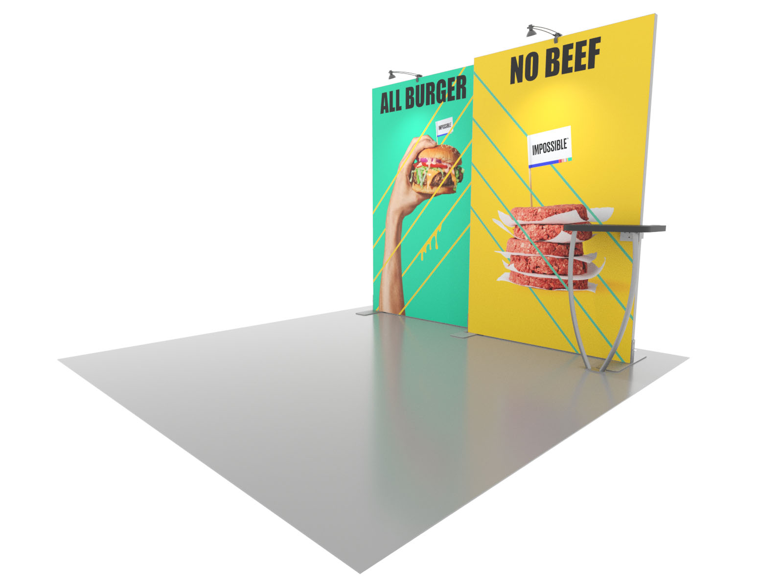 Personalize your Symphony Display with attractive counters, workstations, floating graphics, iPad clamshells, and monitor mounts. The lightweight aluminum frames are engineered for SEG dye-sublimated fabric graphics for a seamless, wrinkle-free look. Add floating graphics for additional visual layering and branding.