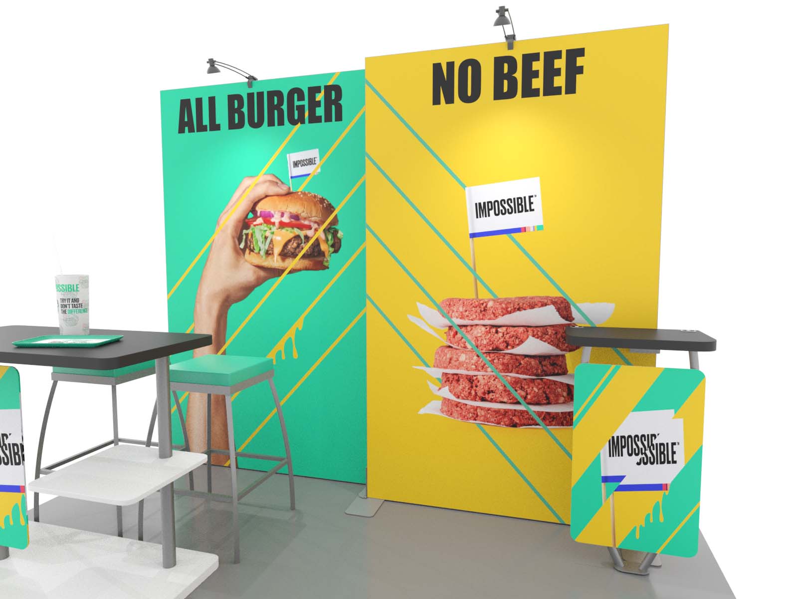 Personalize your Symphony Display with attractive counters, workstations, floating graphics, iPad clamshells, and monitor mounts. The lightweight aluminum frames are engineered for SEG dye-sublimated fabric graphics for a seamless, wrinkle-free look. Add floating graphics for additional visual layering and branding.