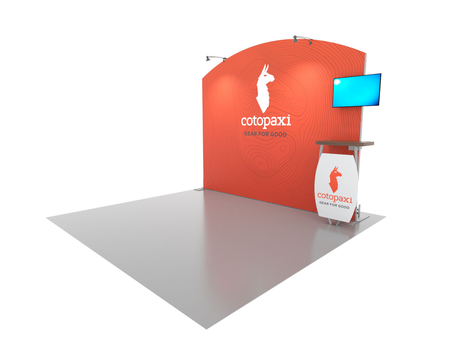 Personalize your Symphony Display with attractive counters, workstations, floating graphics, iPad clamshells, and monitor mounts. The lightweight aluminum frames are engineered for SEG dye-sublimated fabric graphics for a seamless, wrinkle-free look. Add floating graphics for additional visual layering and branding.