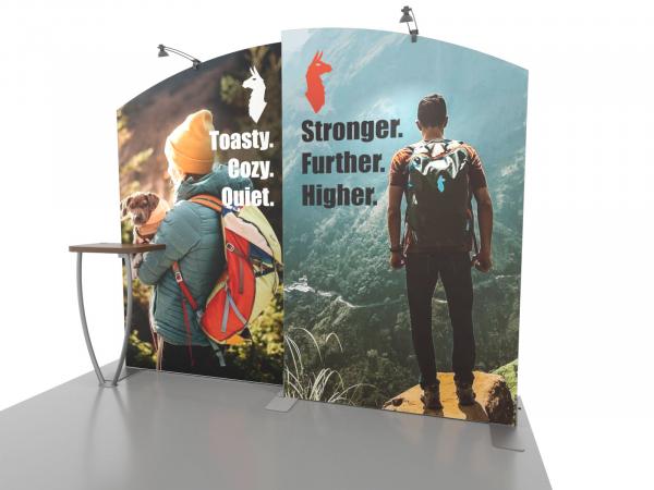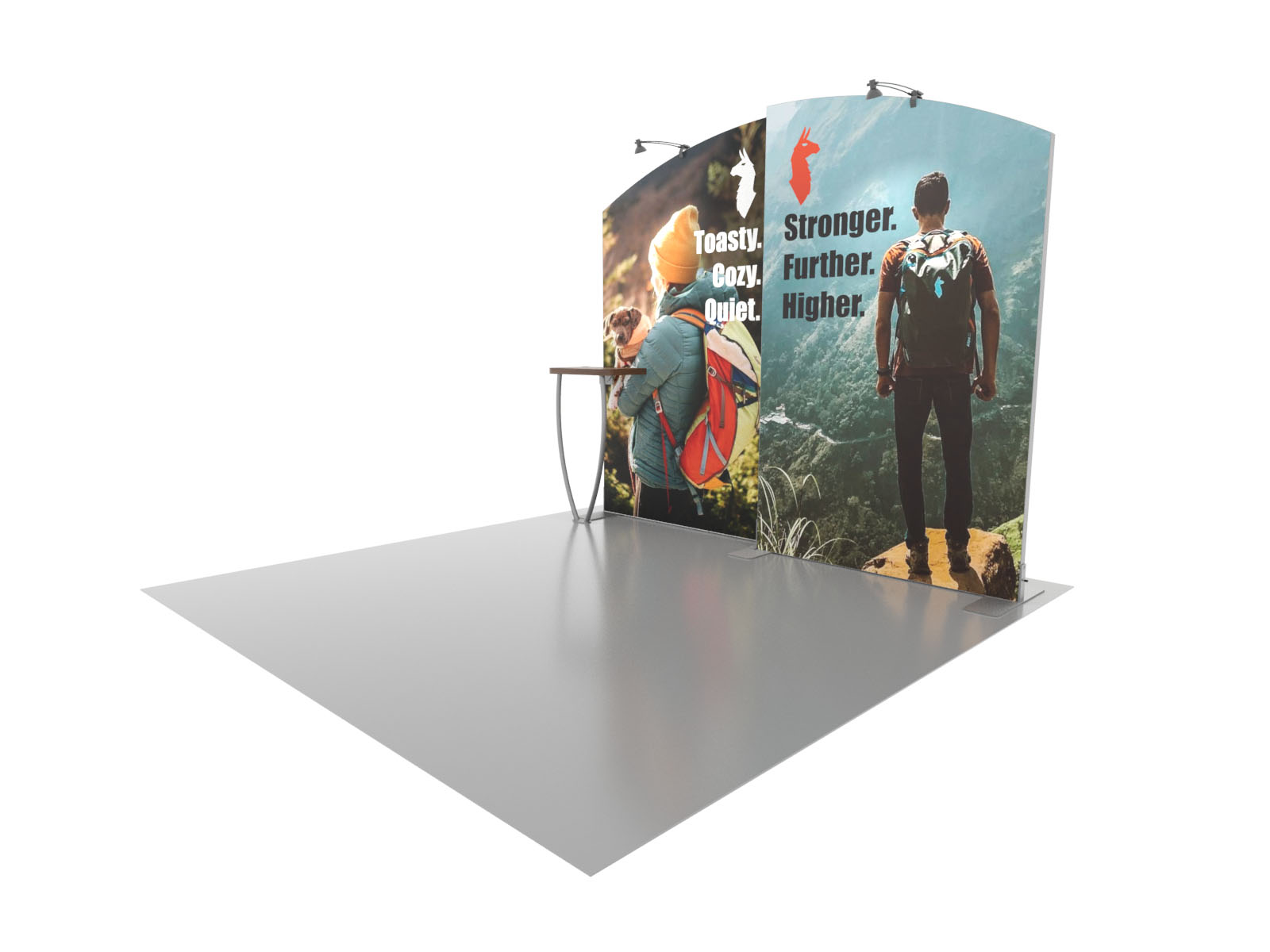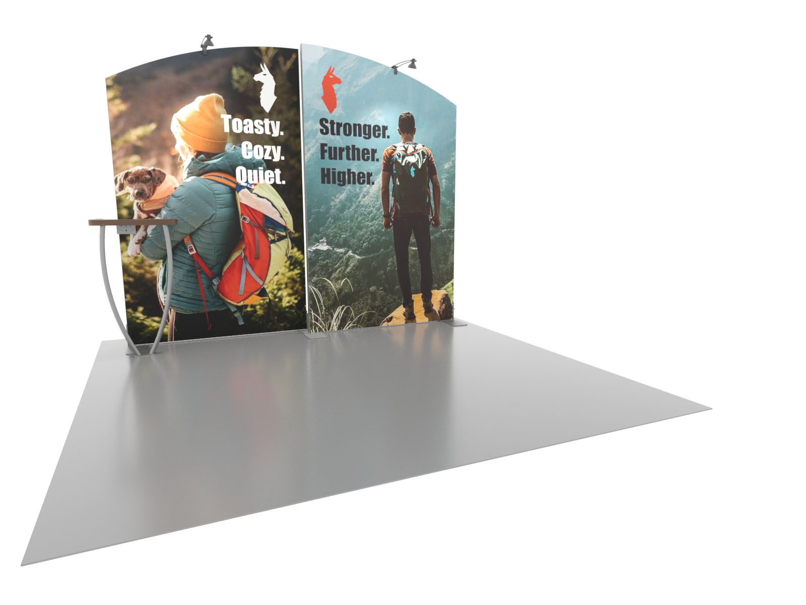 Personalize your Symphony Display with attractive counters, workstations, floating graphics, iPad clamshells, and monitor mounts. The lightweight aluminum frames are engineered for SEG dye-sublimated fabric graphics for a seamless, wrinkle-free look. Add floating graphics for additional visual layering and branding.