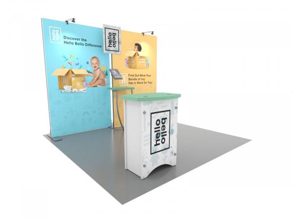 Personalize your Symphony Display with attractive counters, workstations, floating graphics, iPad clamshells, and monitor mounts. The lightweight aluminum frames are engineered for SEG dye-sublimated fabric graphics for a seamless, wrinkle-free look. Add floating graphics for additional visual layering and branding.