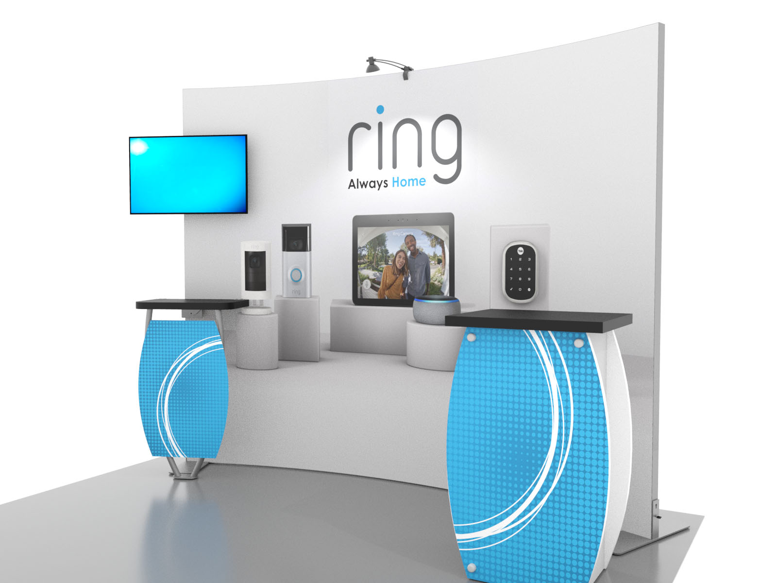 Personalize your Symphony Display with attractive counters, workstations, floating graphics, iPad clamshells, and monitor mounts. The lightweight aluminum frames are engineered for SEG dye-sublimated fabric graphics for a seamless, wrinkle-free look. Add floating graphics for additional visual layering and branding.