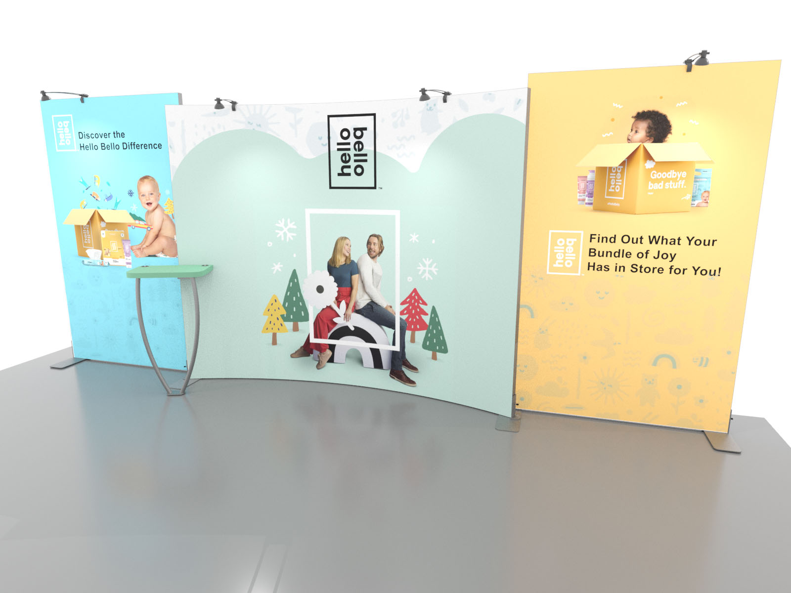 Personalize your Symphony Display with attractive counters, workstations, floating graphics, iPad clamshells, and monitor mounts. The lightweight aluminum frames are engineered for SEG dye-sublimated fabric graphics for a seamless, wrinkle-free look. Add floating graphics for additional visual layering and branding.