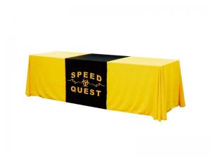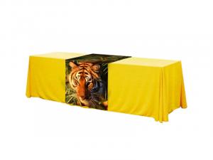 With the exception of a few Intro Table Top designs, which are built exclusively for 8 ft. tables, all the tabletops will fit both 6 ft and 8 ft tables. Most, however, fit better on an 8 ft. table, which allows for addtional space for literature and promotional products.