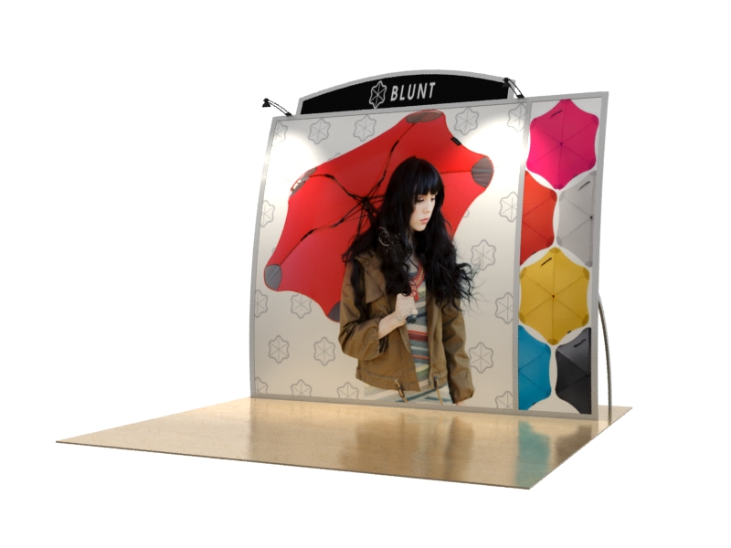 The Magellan Miracle’s big, bad, and beautiful looks will WOW folks on the trade show floor, with its curved big impact graphics. After the show, you’ll be gone in a flash because the Miracle packs small, disassembles fast, and ships in portable cases with wheels. The durable aluminum frame sets-up in less than 30 minutes for a 10 x 10 using quick-assist knobs, and the tension fabric graphics attach with Velcro. It’s that easy.