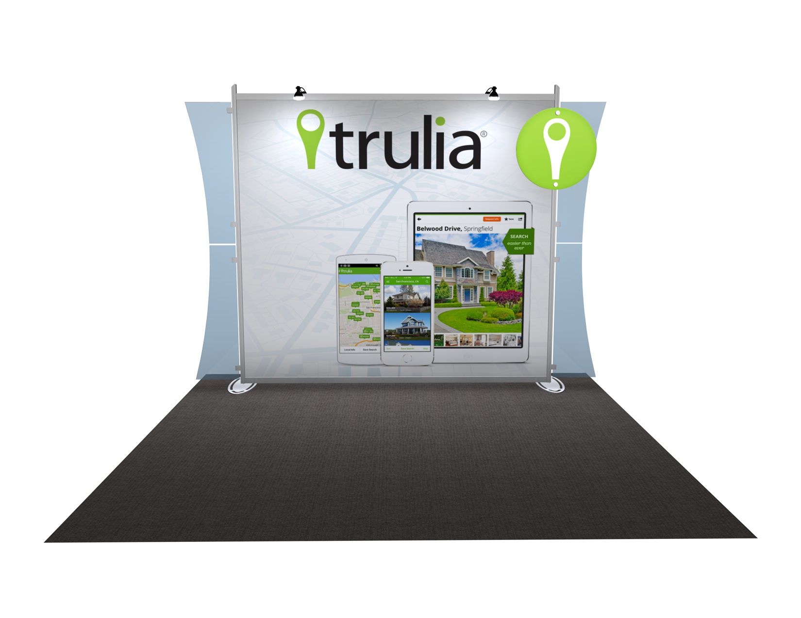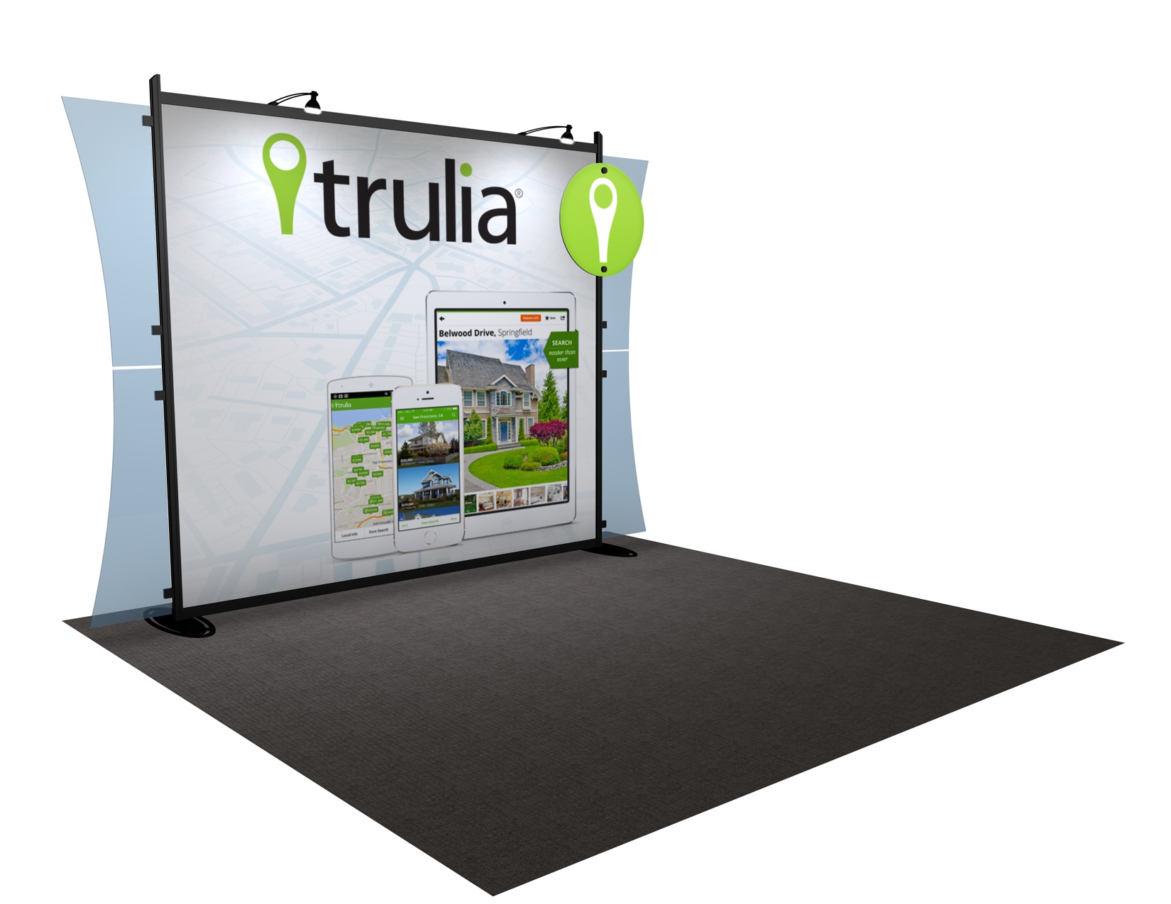 The affordable Sacagawea Portable Hybrid is a contemporary display designed with lightweight engineered aluminum and vibrant tension fabric graphics. Using knob-assisted assembly, the Sacagawea sets-up quickly, typically in less than 40 minutes for a 10 ft. display. All components are individually numbered and pack in durable roto-molded cases with custom die-cut foam packaging. Options include workstations, pedestals, fabric canopies, headers, iPad accessories, and monitors.