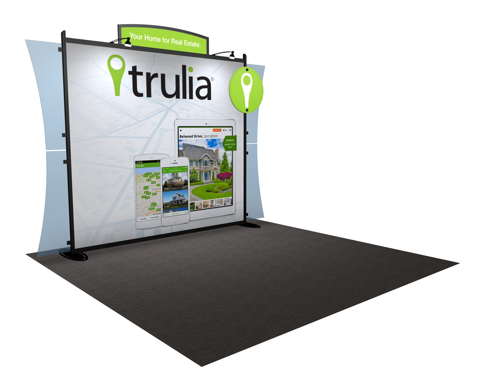 The affordable Sacagawea Portable Hybrid is a contemporary display designed with lightweight engineered aluminum and vibrant tension fabric graphics. Using knob-assisted assembly, the Sacagawea sets-up quickly, typically in less than 40 minutes for a 10 ft. display. All components are individually numbered and pack in durable roto-molded cases with custom die-cut foam packaging. Options include workstations, pedestals, fabric canopies, headers, iPad accessories, and monitors.