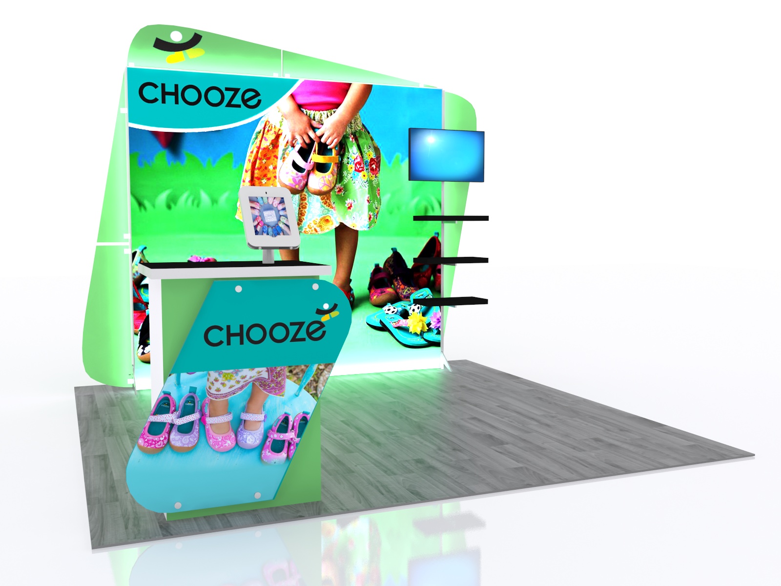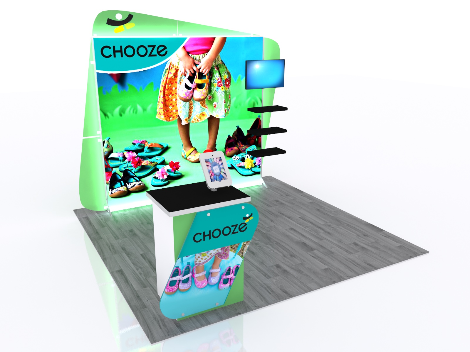 Don't be fooled. Not all lightboxes are the same. SuperNova Lightboxes are brighter, bolder, and more durable. When combined with our HD fabric graphics, no lightbox is more vibrant or attracts more attention. The VK-1961 and VK-1960 are attractive, practical, and portable lightboxes designed for the serious exhibitor. Both designs include SEG fabric and direct print graphics, shelves, and a monitor mount. The VK-1961 includes the MOD-1560 pedestal with an angled standoff graphic, MOD-1329 iPad stand, and locking storage. Want a different pedestal? See all your options in the Counters and Pedestals Gallery. Nearly 200 choices.
