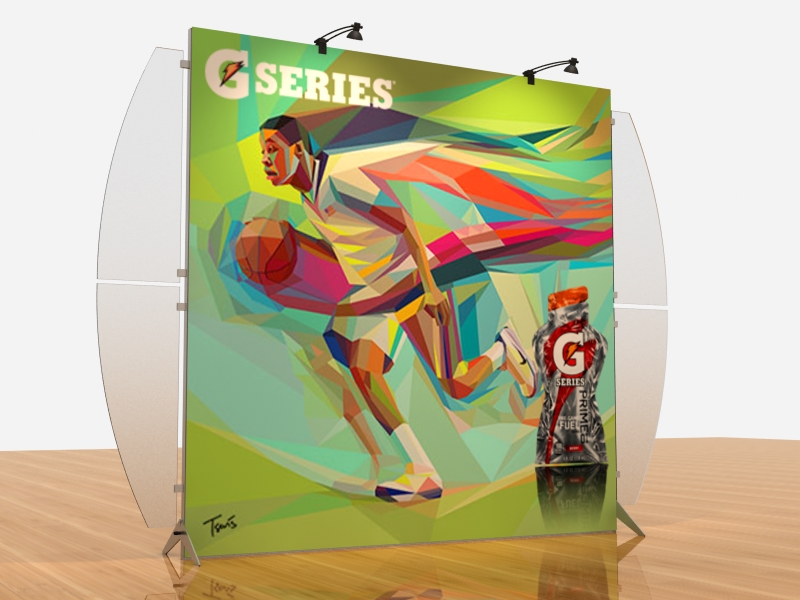 The Sunrise features lightweight aluminum extrusion and large format tension fabric graphics. Choose from 10 x 10 and 10 x 20 designs, single and double-sided graphics.