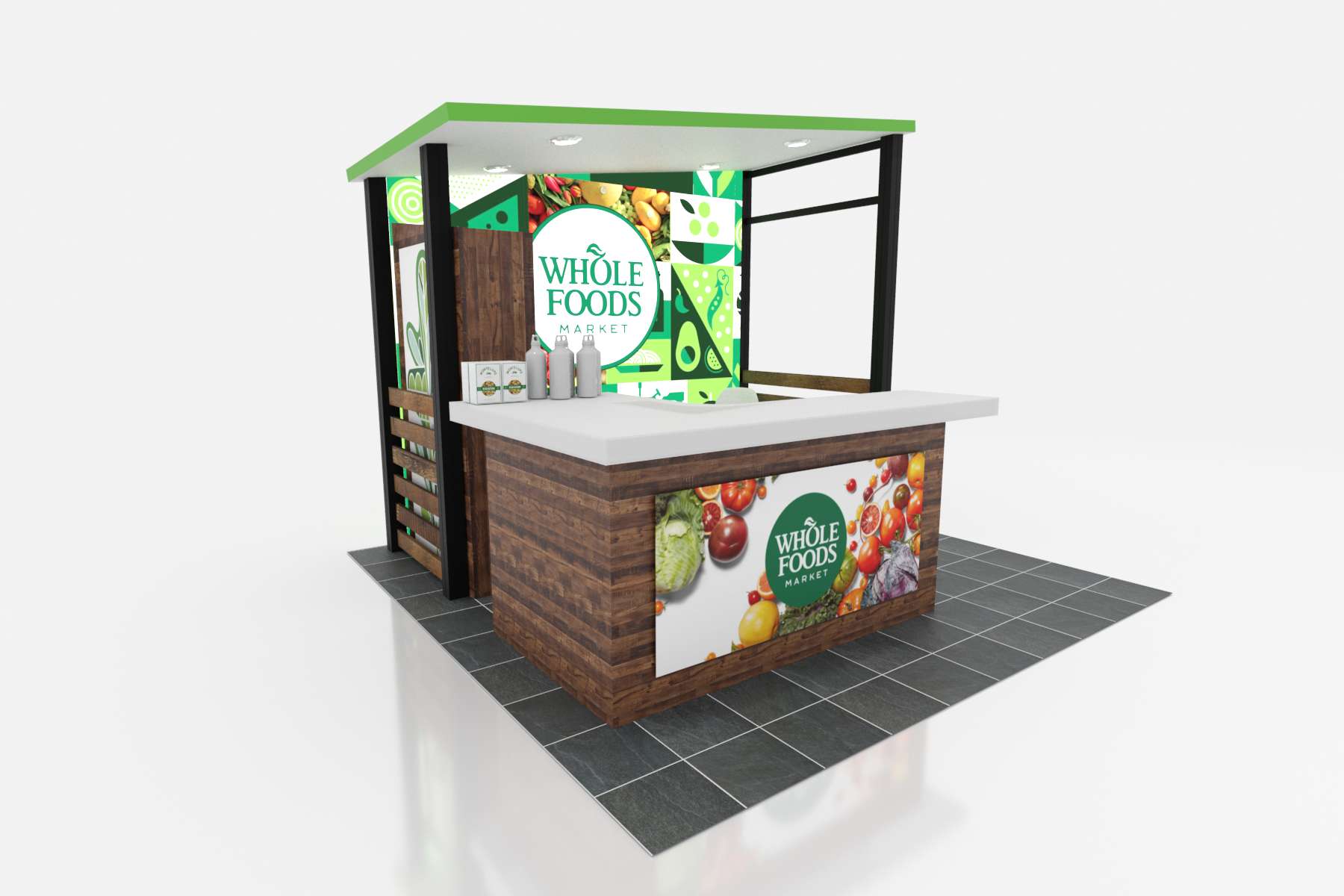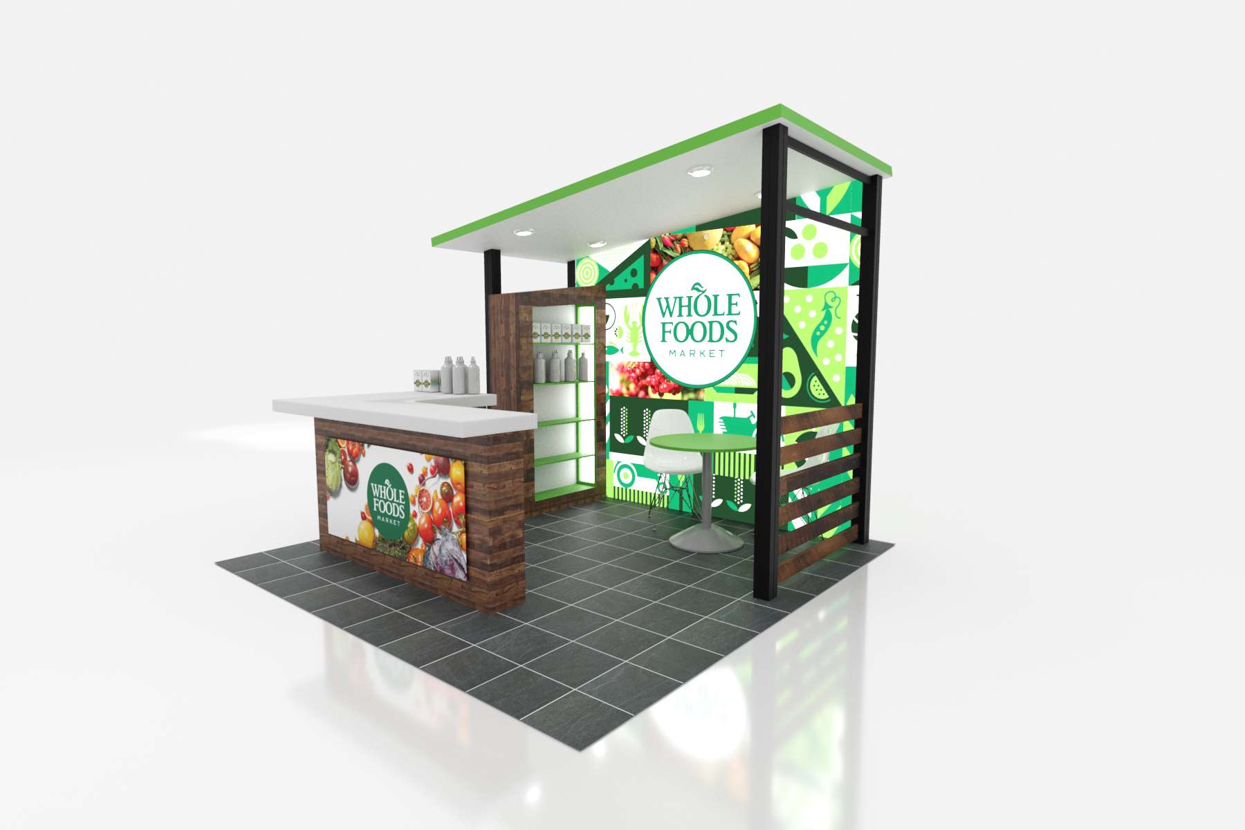 The VK-3009 series isn't for everyone. Not everyone needs a Farmer's Market exhibit. But before you dismiss it, imagine it with white powder-coating, red ceilings and neutral laminates. Suddenly, the farm vibe becomes more of a healthcare feel. These inline designs are adaptable to any exhibitor who needs a dynamic, distinctive display that reconfigures to 30 ft., 20 ft., and 10 ft. inlines. The large LED Lightbox(es) anchor the branding and messaging. Their modular construction ensures they are easy to assemble. The ceilings provide a unifying touch across the three inlines making them instantly identifiable from show to show regardless of the size. Finally, the display case and counters are practical accessories, providing product shelving and locking storage.