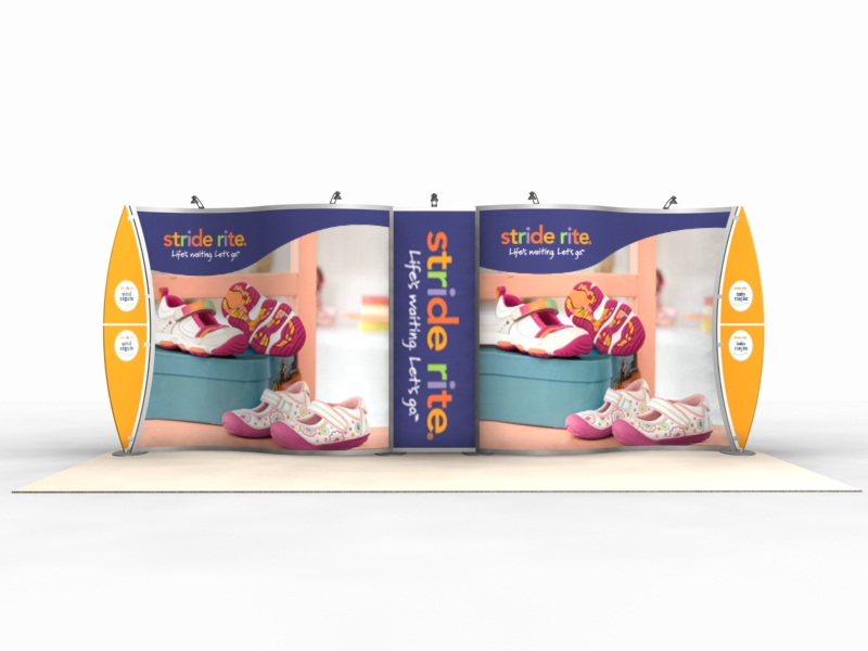 If you like curves, and who doesn’t like curves, then you’ll love the Magellan MOR. The Magellan MOR makes a bold statement at any trade show with its flowing lines and large format tension fabric graphic(s). Simply assemble the lightweight engineered aluminum frame with the quick assist knobs, unfold the fabric graphics, and attach them to the Velcro already on the frame. Options include workstations, headers, 9 wing colors, and monitor mounts. Choose from (6) 10 ft and 20 ft. kits.