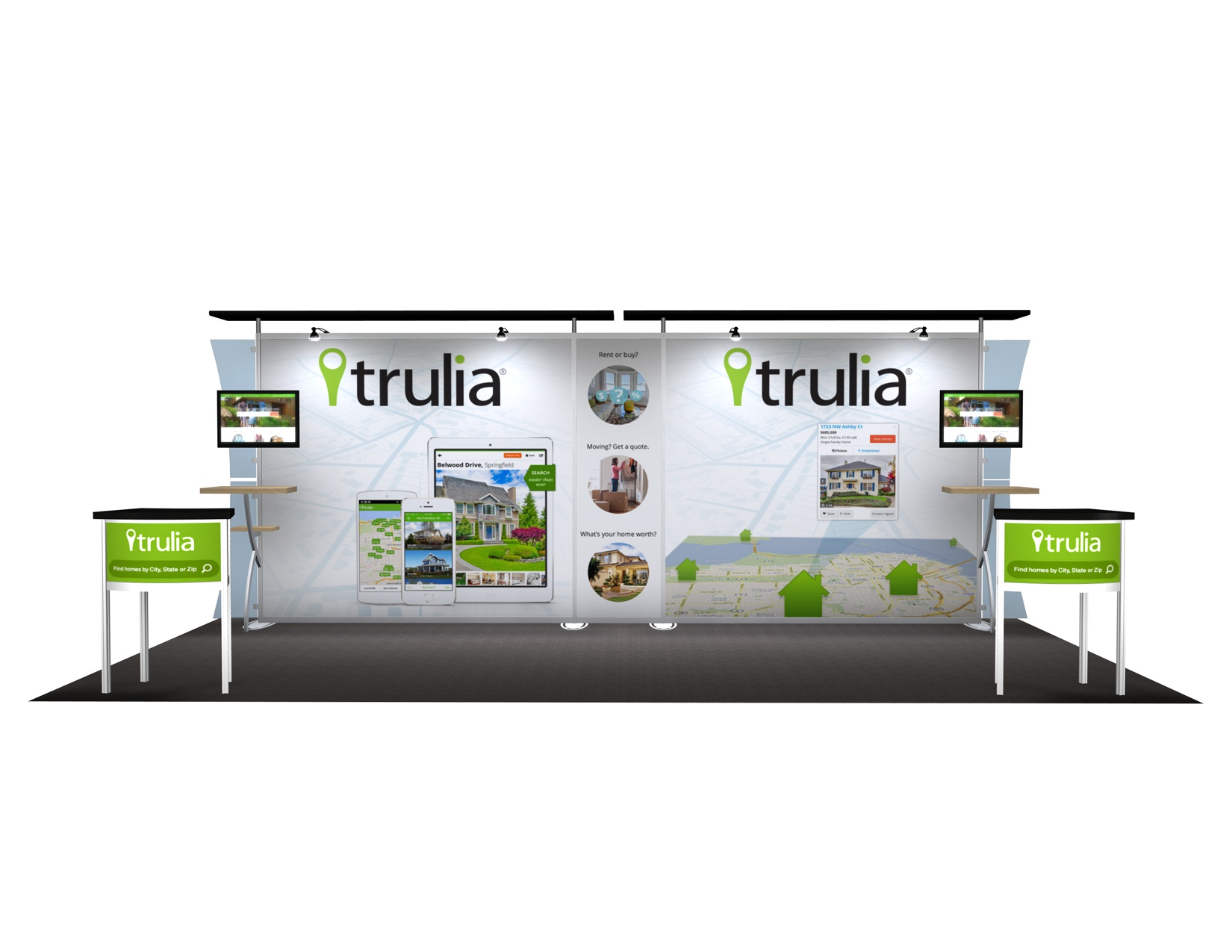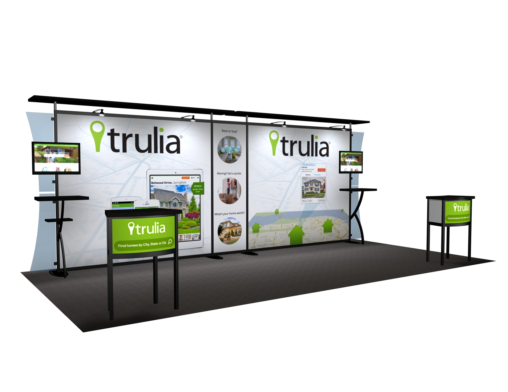 The affordable Sacagawea Portable Hybrid is a contemporary display designed with lightweight engineered aluminum and vibrant tension fabric graphics. Using knob-assisted assembly, the Sacagawea sets-up quickly, typically in less than 40 minutes for a 10 ft. display. All components are individually numbered and pack in durable roto-molded cases with custom die-cut foam packaging. Options include workstations, pedestals, fabric canopies, headers, iPad accessories, and monitors.