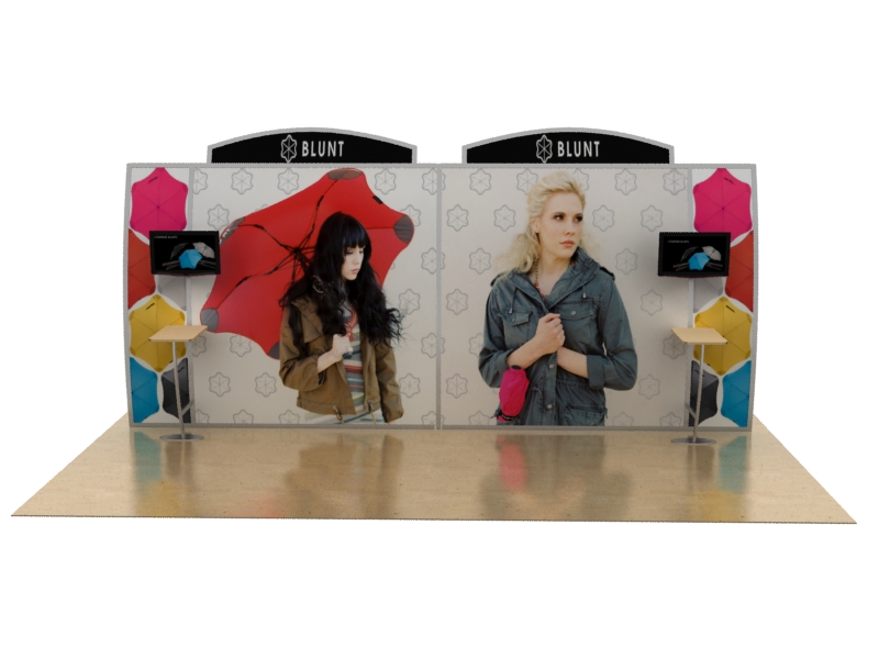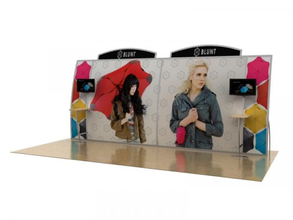 Hybrid is a relatively new category of trade show displays. Generally, portable hybrid displays incorporate aluminum extrusion, tension fabric, and other display components to create a modern-looking tabletop or inline display. For a more comprehensive explanation, refer to the article:
