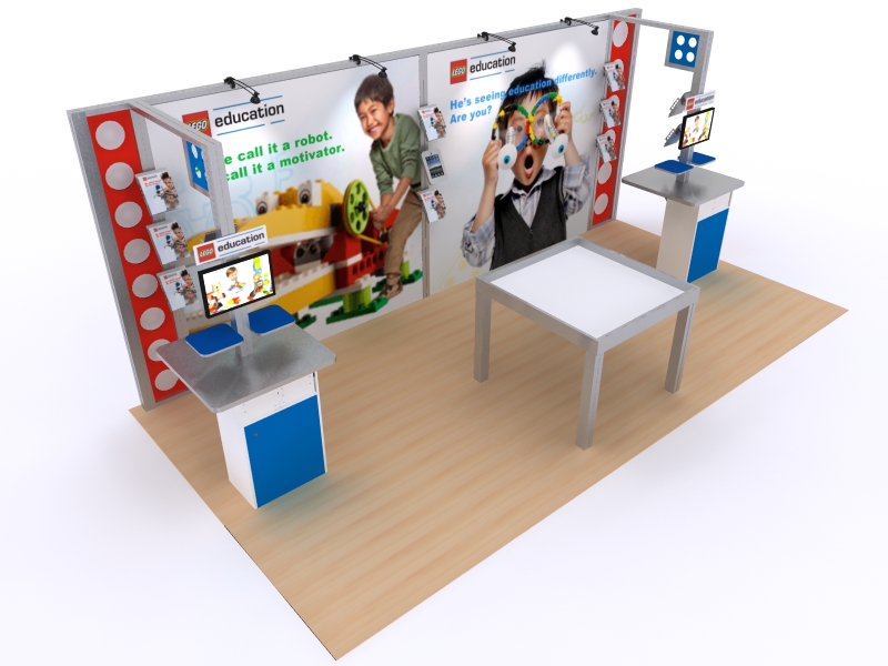 Don't let the graphics fool you. This is an ideal inline display for any product or service. First, re-configuring your stunning island to inlines has never been easier. The VK-5008 and VK-5007 are high impact islands with practical workstations, monitor stands, and storage. The VK-1112 and VK-2951 take the best of the islands into kid-friendly inlines with play areas and interactive workstations. Second, all the designs have ample floor space, making it easy to interact with clients or to let kids be kids. The large format graphics ensure you'll be seen in whatever configuration you choose.