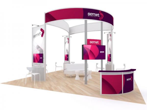 There's nothing shy about an island display. It says you've arrived. Studies show that exhibitors naturally gravitate to a well-designed island exhibit. It attracts attention for several reasons. Island graphics are almost always larger than inline graphics. Large graphics make a statement, whether through color, size, messaging or all three. Second, island exhibits allow for conferencing, presentation, large monitors, and demonstrations. Crowds attract crowds.