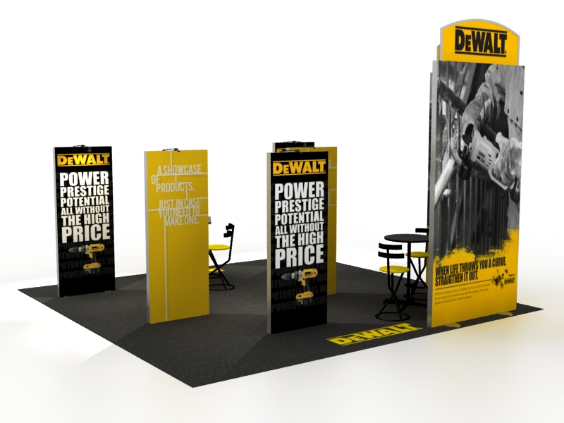 Most exhibitors are obsessive about their marketing message. They strive for a clear, consistent message that differentiates them their competitors on the show floor. To achieve that, it must be bold, succinct and often dramatic. The VK-5040, VK-2970, and VK-1328 series does that . . . and more! The multiple large graphics ensure that visibility it maximized with double-side towers, product displays, and graphic stands. At a glance, you know there's nothing shy about these displays. They're designed for multiple configurations, all using the same graphics. The reception counter has locking storage and the island configuration has open space for a meeting area.