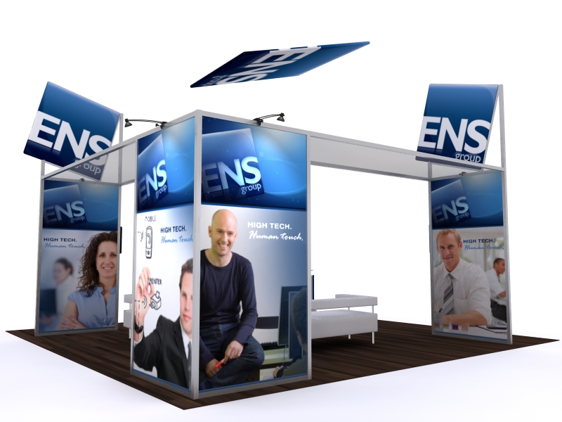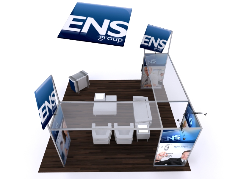 We love this design. Simple, straightforward, and effective. It puts the message first and complements it with practical accessories and a comfortable meeting space in the island version. All the large format graphics are vibrant tension fabric for high-impact and low-maintenance. In both the inlne and island versions, there's a workstation counter(s) with a monitor, perfect for one-on-one presentations. The reception counter has been a favorite with a solid, upscale appearance, complete with extensive storage. Best of all, you never have to worry about reconfiguring your exhibit, go from a 10 ft. to a 20 ft. inline, to a 20 x 20 island.