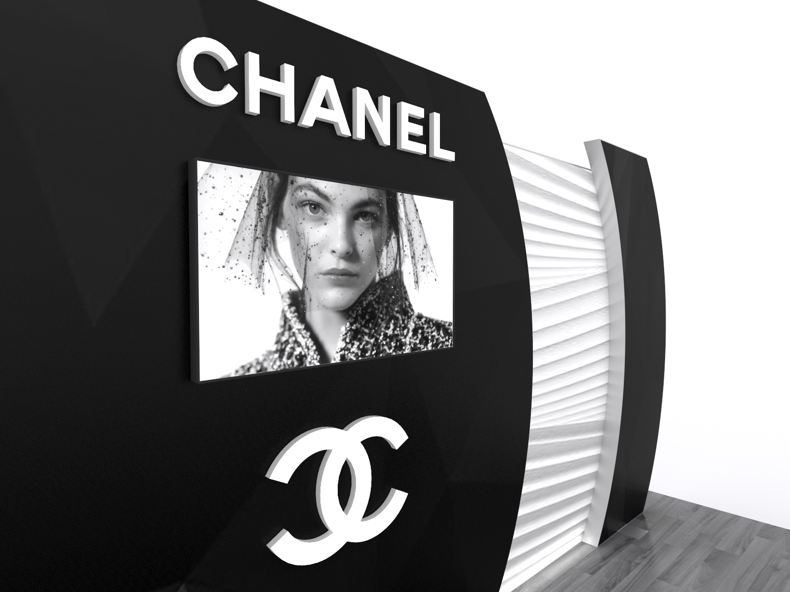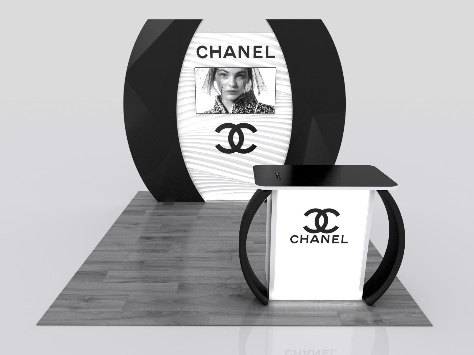 VK-6000 SuperNova Custom Lightbox -- Image 1This distinctive VK-1349, VK-1352, and VK-6000 lightboxes blend exceptionally bright LED lights, an aluminum SEG frame, and vibrant fabric graphics into a brilliant eye-catching display. The large LED lightbox spans the display and is framed with curved laminated panels. The middle section supports a large monitor and includes graphics for high impact.  Upfront there's a modified MOD-1550 reception counter with a front backlit graphic and USB charging ports. On the far right are two product displays with uplighting on the 20 ft. display. All have integrated cord management. You won't believe your eyes the first time you flip the switch and see how stunning your backlit graphic can be.
