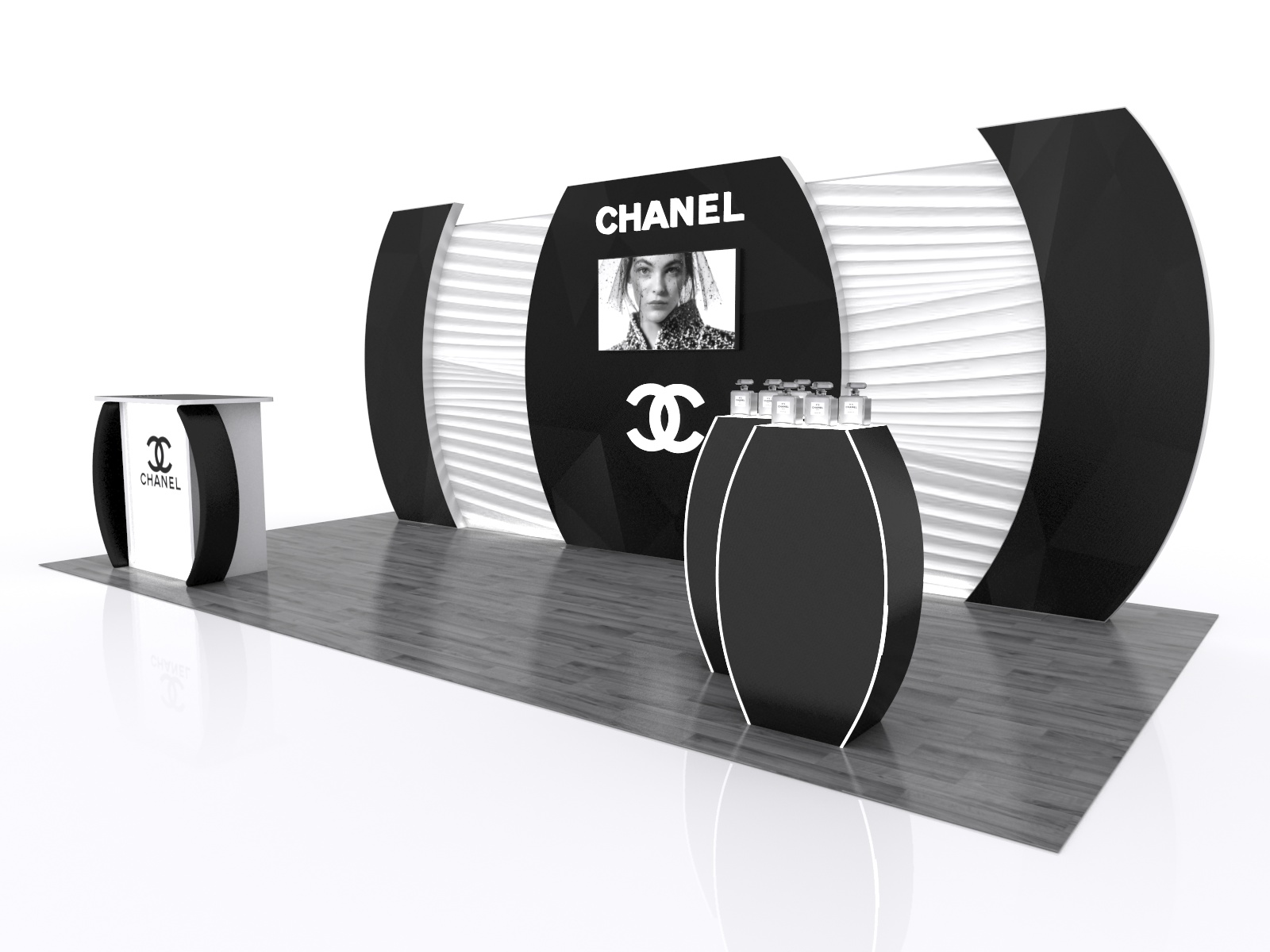 In European shows, the display may extend 8 ft. to the aisle, which is uncommon in North American shows.