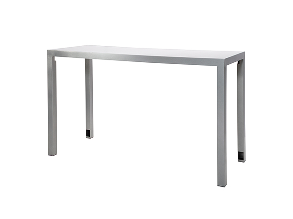 Laminate top with silver powder-coated legs in misc. colors. Dims: 72.25" L x 26.25" D x 42" H