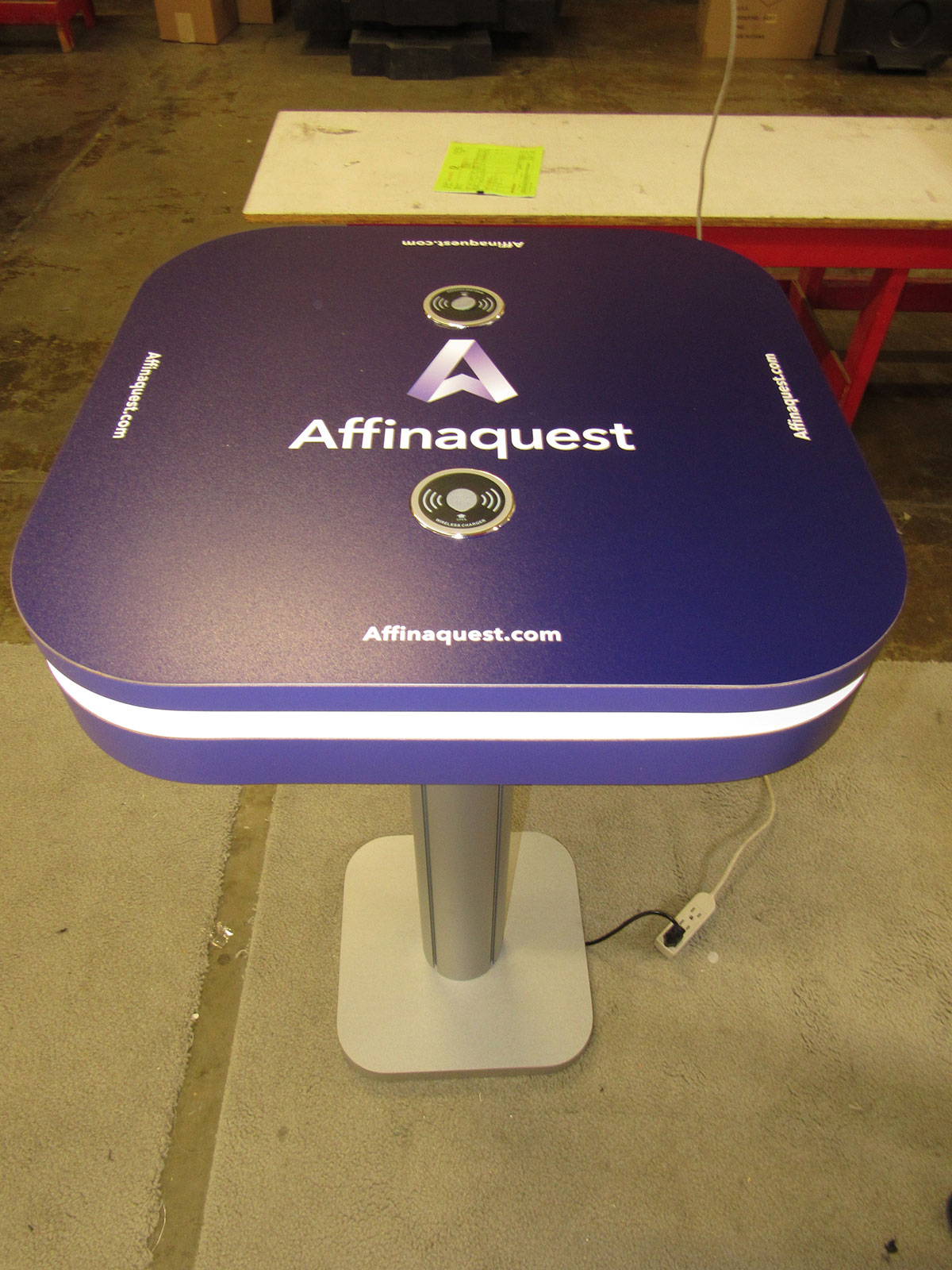 Custom Wood Counter with Vinyl Graphics, Wireless Charging Pads,