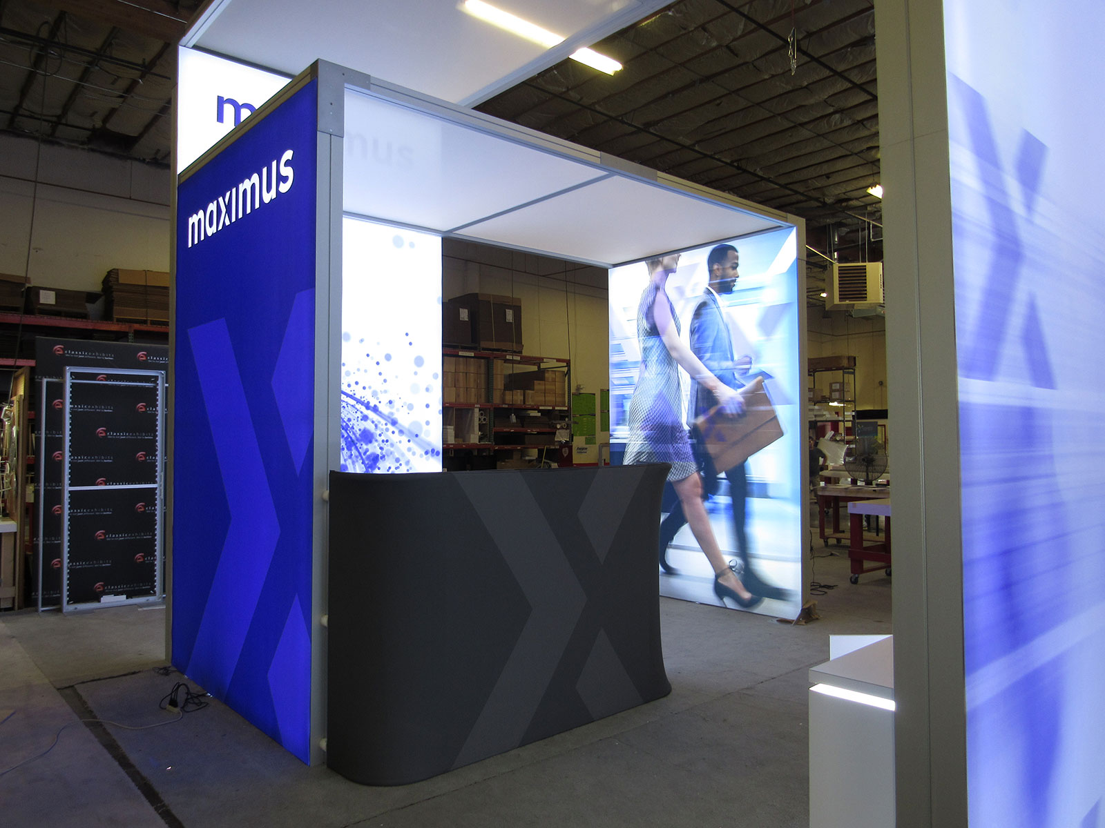 Custom Inline Exhibit with Backlit Fabric Graphics, Monitor Mount,