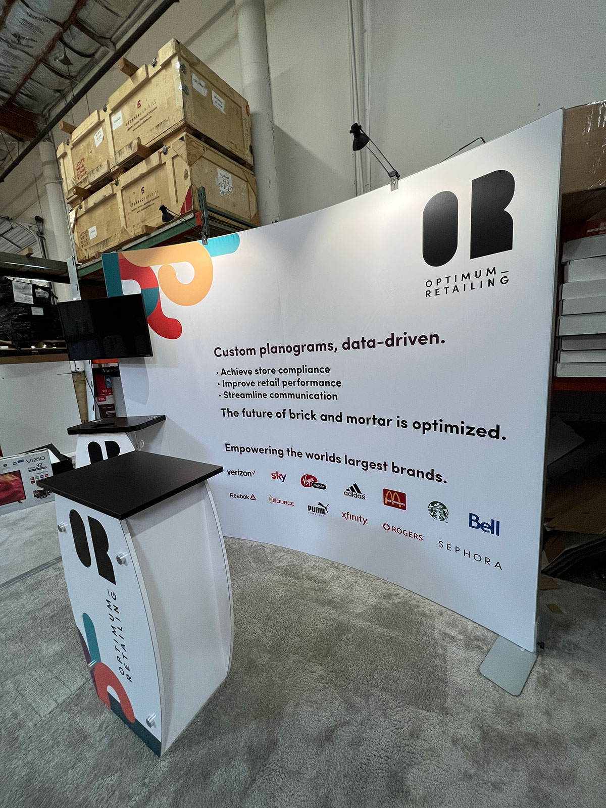 Custom Inline Exhibit with Tension Fabric Graphics, (3) Backwall