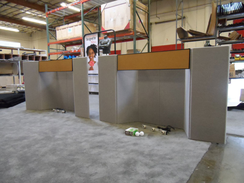 Fabric Panel Display with Laminate Showcase Tower and Counter