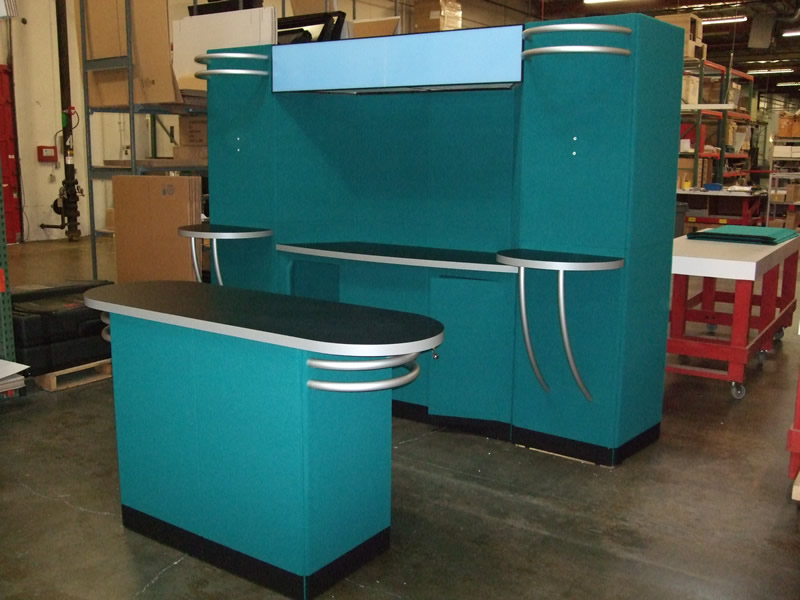 Intro Fabric Panel Display with Slatwall, Peninsula Counter, and