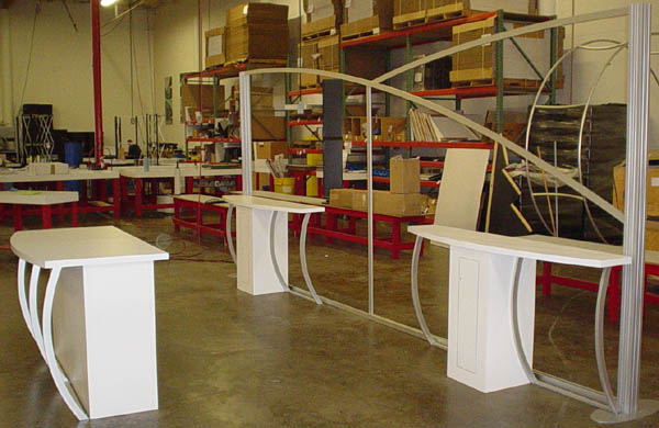 LTK-1109 Modular Pedestal with Locking Storage 10' x 20' Visionary Designs Hybrid Exhibit with MOD-1122 and MOD-1121 Counters (missing tension fabric graphics)
