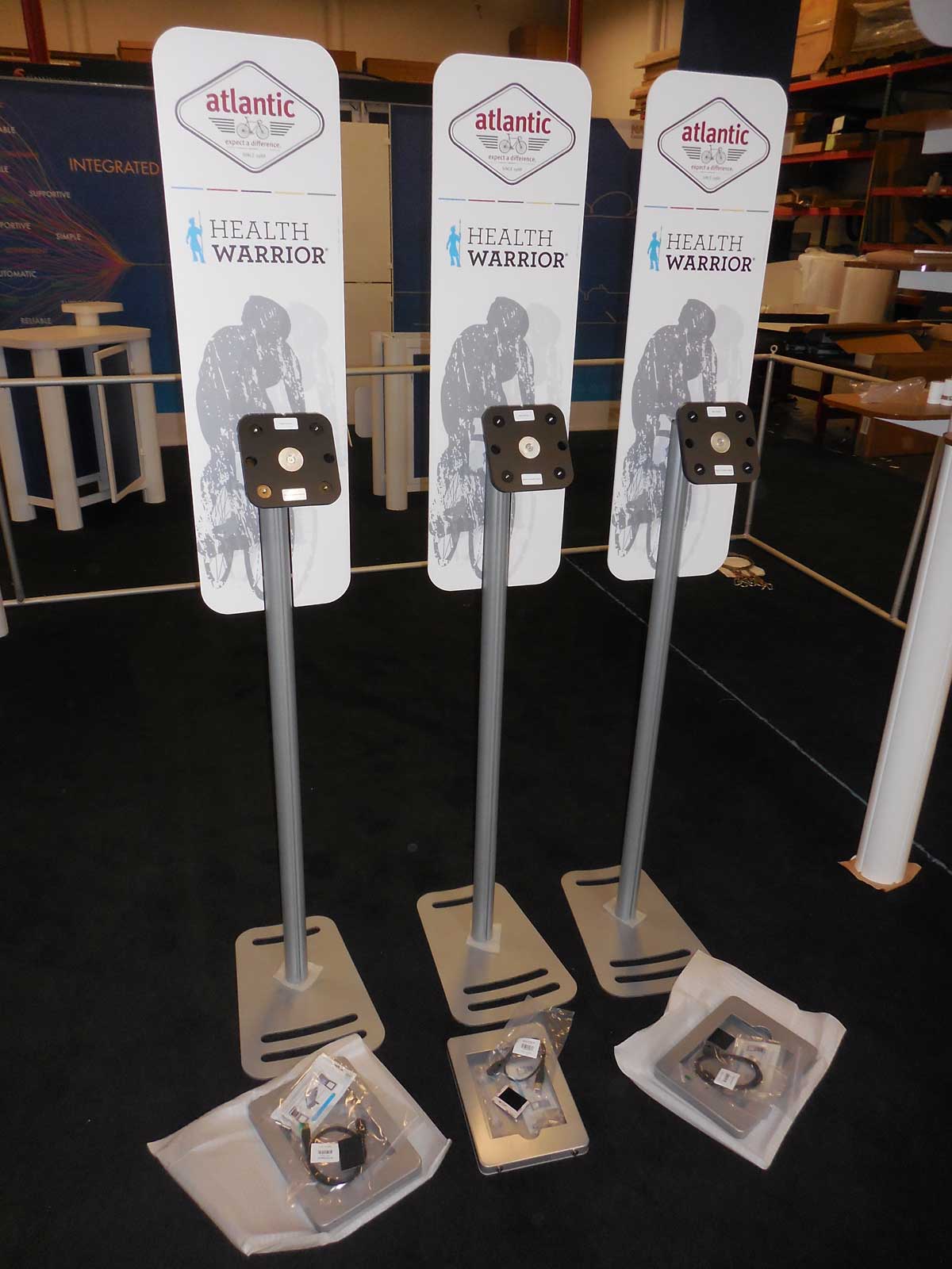 (2) MOD-1369 iPad Stands with Locking Clamshells and Graphics [50653, 50715]