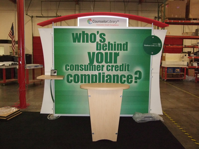 Modified VK-1231 Sacagawea Portable Hybrid Display with Tension Fabric Canopy and Workstation Counter -- Image 1 Modified VK-1231 Sacagawea Portable Hybrid Display with Tension Fabric Canopy and Workstation Counter -- Image 2