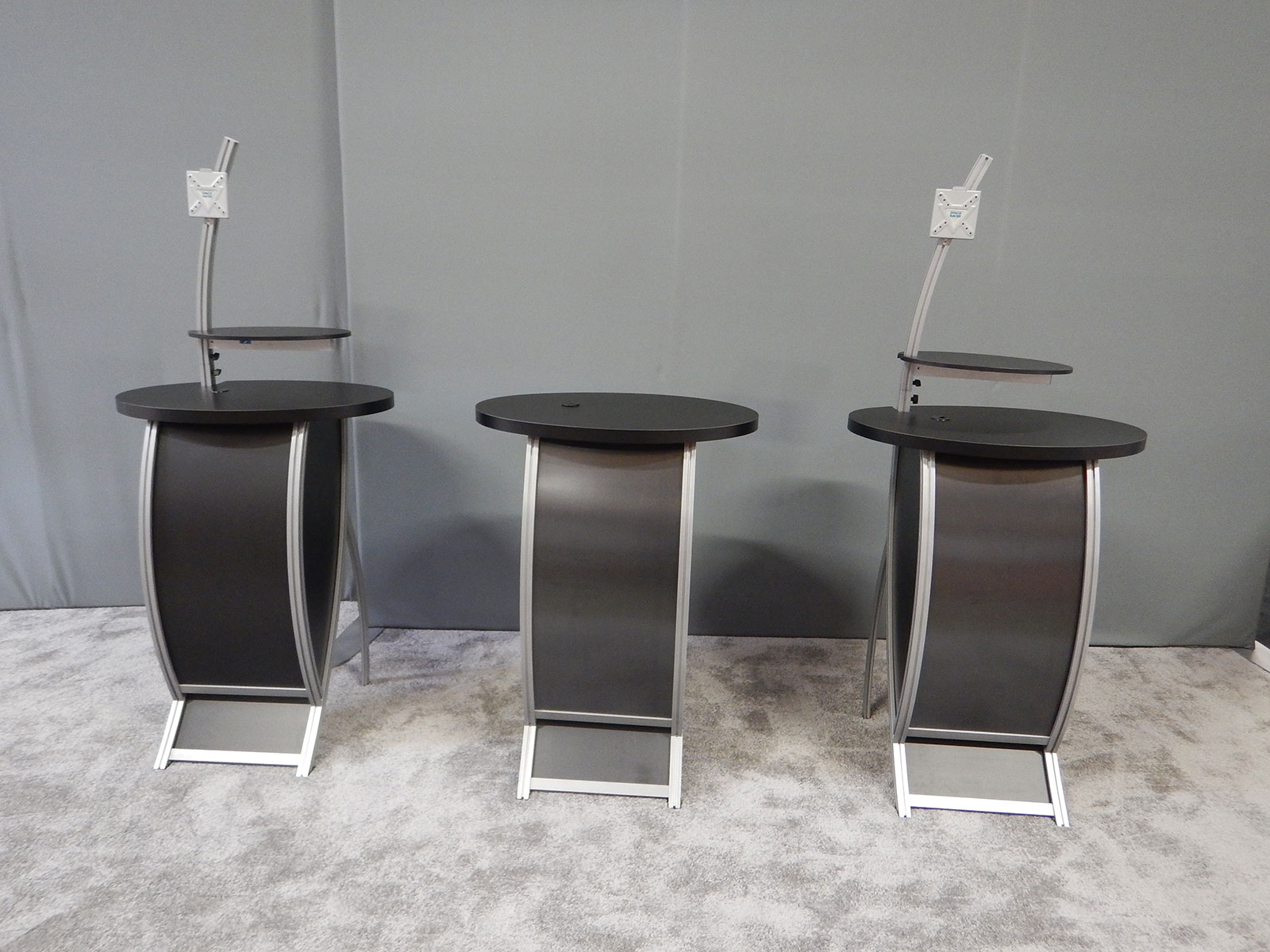 Counters with Black Oval Shelves, 30" High Curved Extrusion Monitor