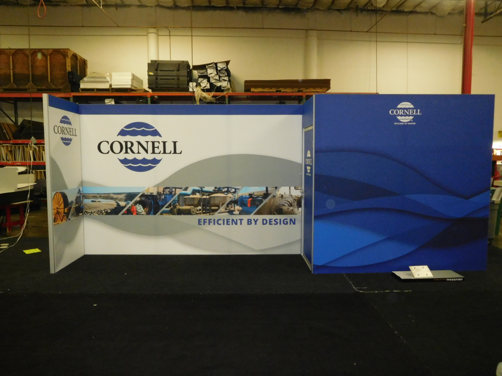 GK-2010 Hybrid Trade Show Inline Modified, Engineered Aluminum Structure, Large Format Tension Fabric, GK-5156 Trade Show Storage Tower, Closet with Full-size Door, (11) Double-sided Flat Gravitee Panels, Flat Gravitee Door [51947]