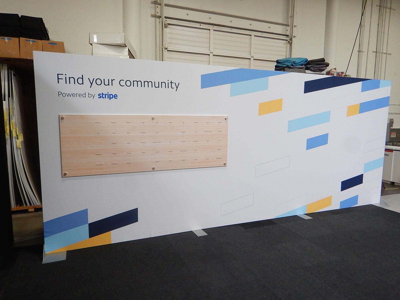RENTAL: Backwall with Silicone Edge Fabric Graphic (SEG), and Direct Print Sintra Stand-Off Graphic with Wooden Pegs RENTAL: Backwall with Silicone Edge Fabric Graphic (SEG), and Direct Print Sintra Stand-Off Graphic with Wooden Pegs