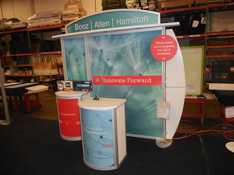 VK-1321 Visionary Design Hybrid Exhibit with Storage, Header, Counters, and Large Format Fabric Graphics -- Image 1 VK-1321 Visionary Design Hybrid Exhibit with Storage, Header, Counters, and Large Format Fabric Graphics -- Image 2