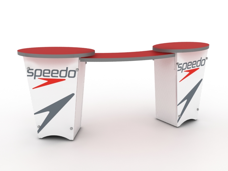 When choosing the right counter or pedestal for your display, consider how you will use it on the show floor. Do you need locking storage? Will the counter or pedestal hold a lead retrieval machine, laptop, or other electrical device? If so, you will need wire management. That may be as simple as ordering a grommet for the counter. If you are planning to use a tablet computer, consider the tablet insert option for the counter top. This option is practical, attractive, and secure for many tablets, such as an iPad.