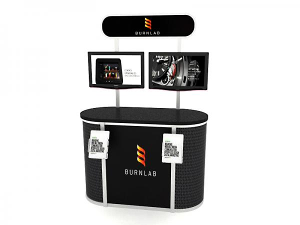 When choosing the right workstation or monitor stand for your display, consider how you will use it on the show floor. Do you need locking storage? Will the workstation or monitor stand hold a lead retrieval machine, monitor, or other electrical device? If so, you will need wire management. That may be as simple as ordering a grommet for the counter or arranging for cord covers. If you are planning to use a tablet computer, consider the tablet insert option for the counter top. This option is practical, attractive, and secure for many tablets, such as an iPad.