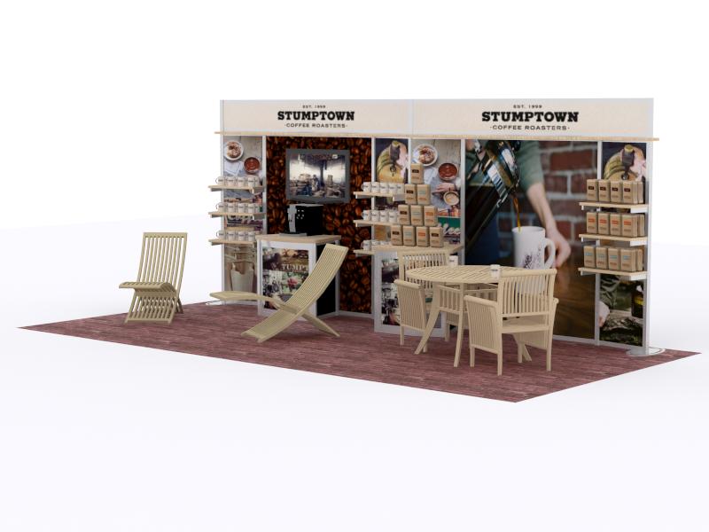 Hybrid is a relatively new category of trade show displays. Generally, hybrid displays incorporate aluminum extrusion, tension fabric, and other display components such as laminates, wood, Sintra, and other materials to create a tabletop, inline, or island exhibit.